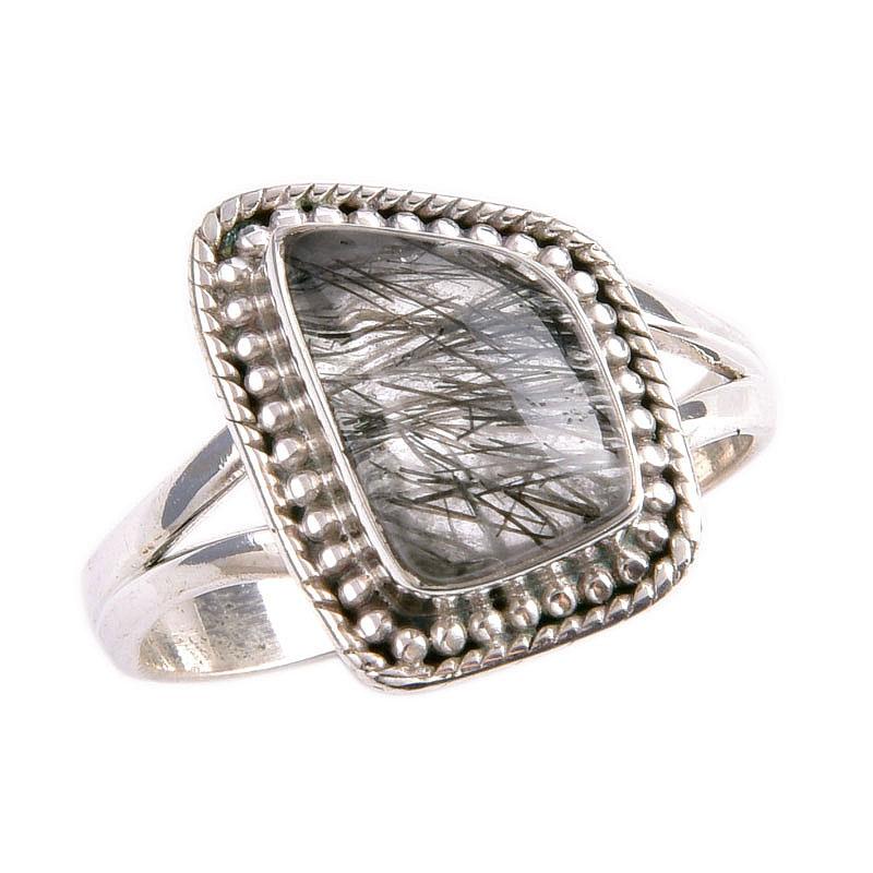Кольцо из стерлингового серебра 925 пробы с натуральным черным рутиловым драгоценным камнем S.8.5 f6p70