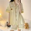 Летние пижамы, женские шорты с короткими рукавами, свободный кардиган с бантом, летний можно носить как домашний комплект одежды