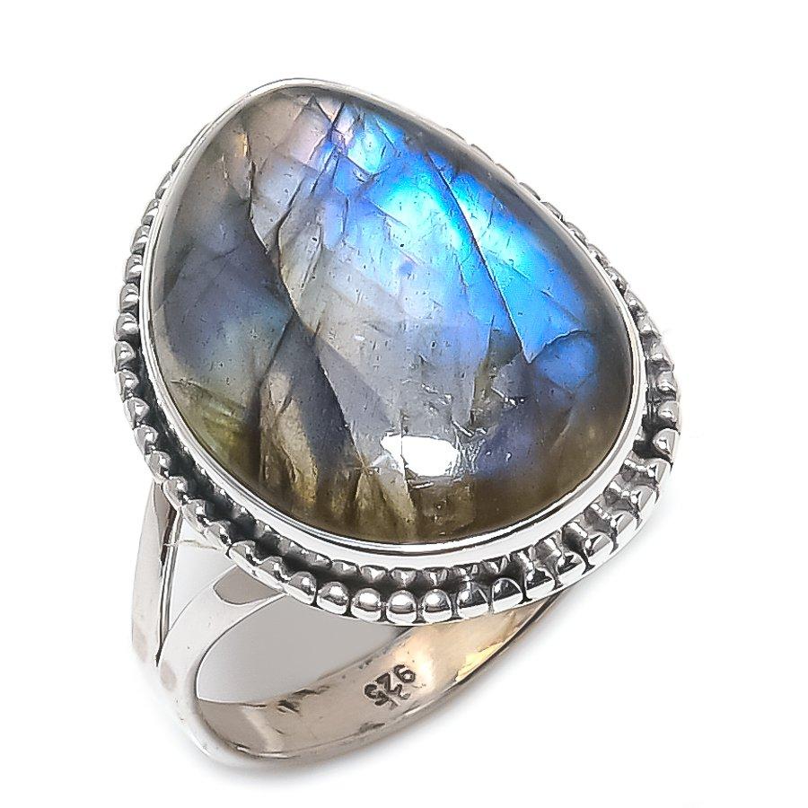 Натуральный лабрадорит драгоценный камень 925 пробы серебро кольцо размер 10 m0I89