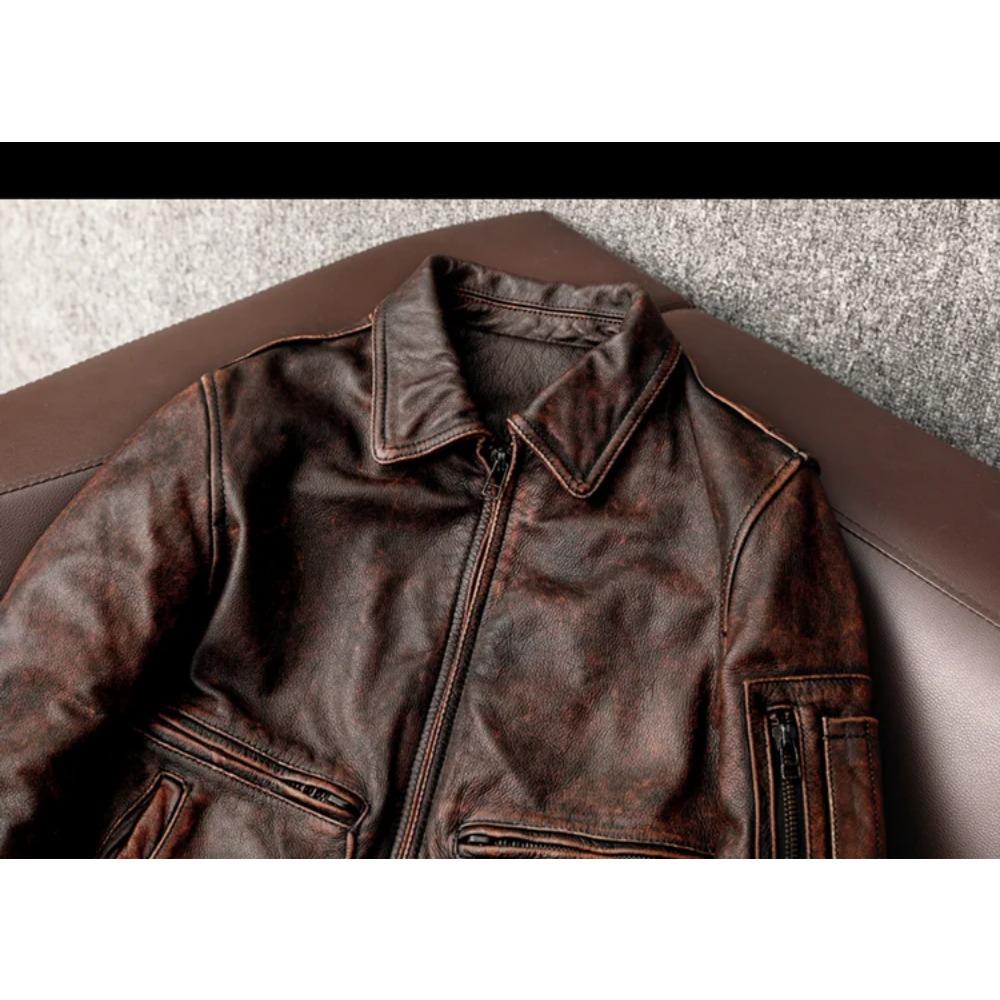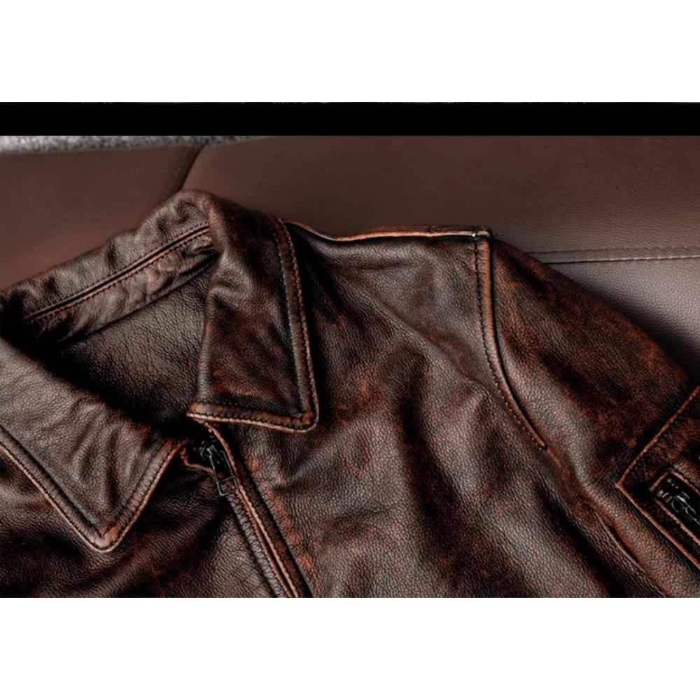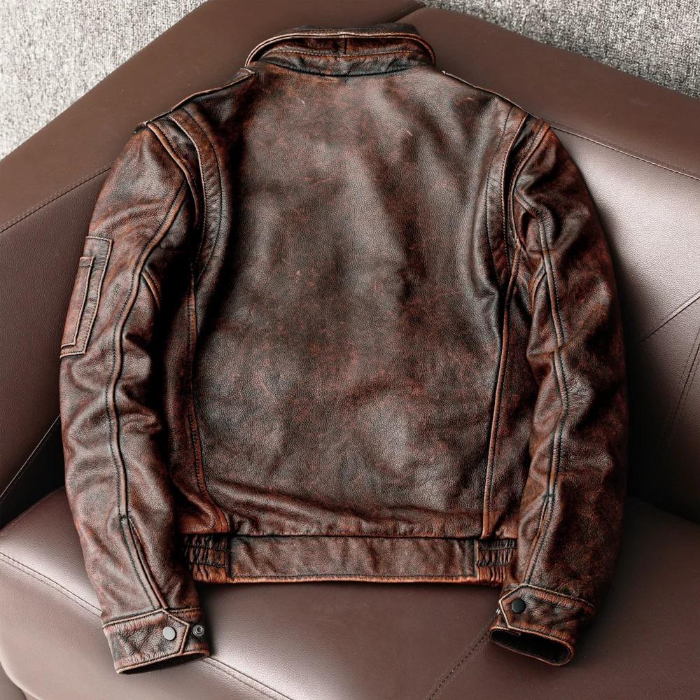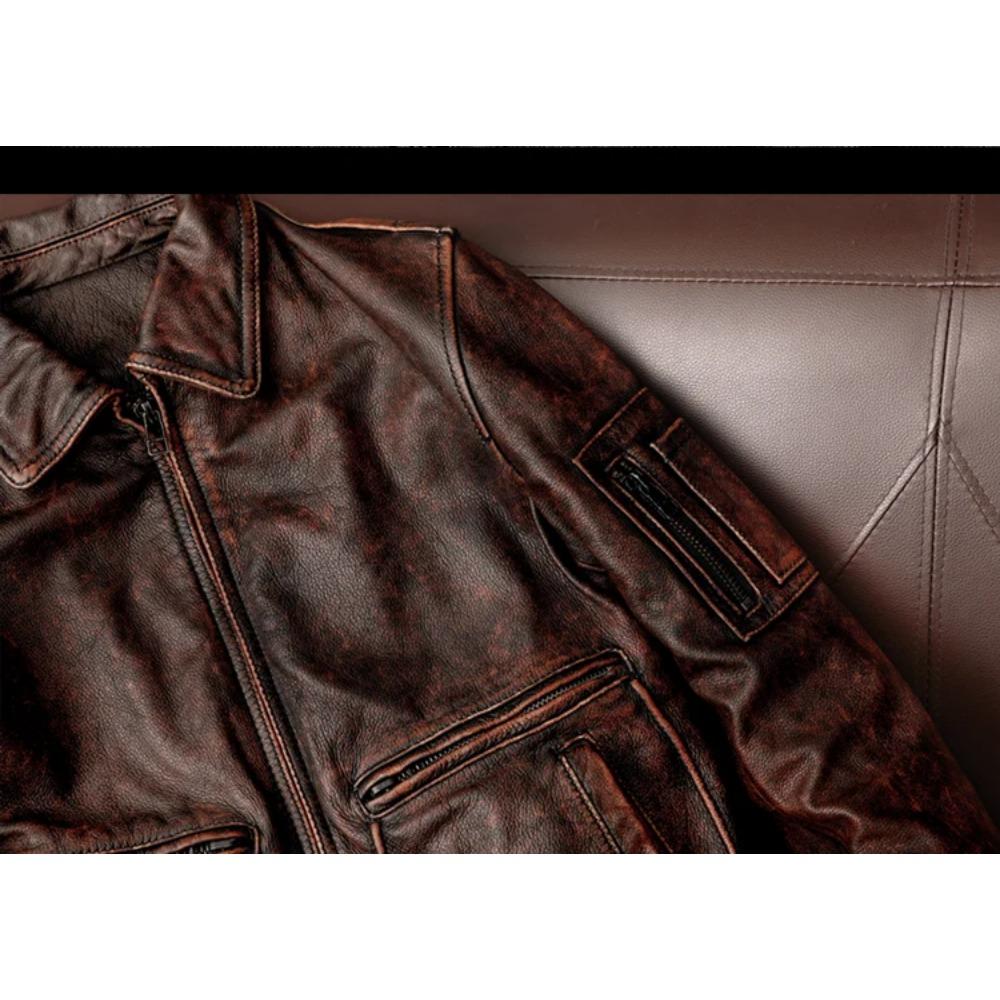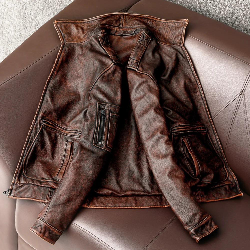Китайский размер, весна и осень, новая куртка из натуральной кожи, мужская винтажная куртка из воловьей кожи, повседневный мужской летный костюм, одежда