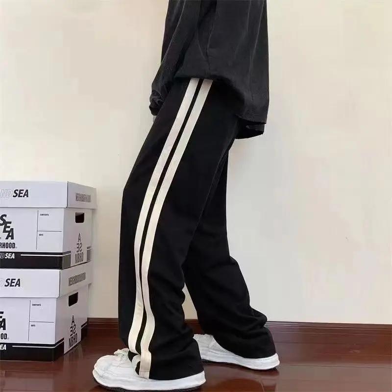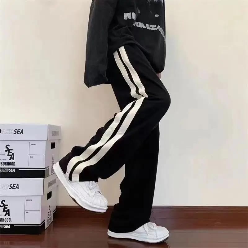 Корейские модные широкие брюки женские свободные повседневные полосатые брюки с высокой талией в стиле хип-хоп с эластичной резинкой на талии и карманами, прямые брюки