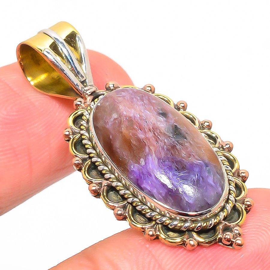 Натуральный российский чароит двухцветный 925 пробы стерлинговое серебро кулон 1,75'' s7I52