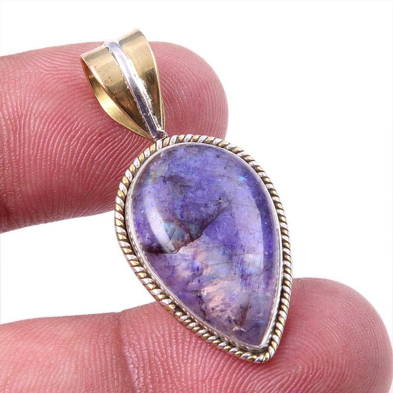 Подвеска из натурального фиолетового лунного камня из цельного серебра 925 пробы в двух тонах 1,25'' v8y82