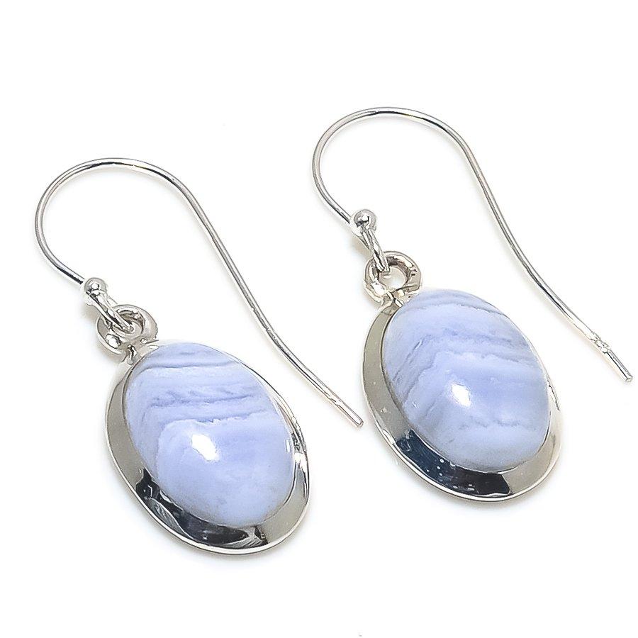 Серьги из натурального голубого кружевного агата, стерлингового серебра 925 пробы, 1,25 дюйма, e1J13