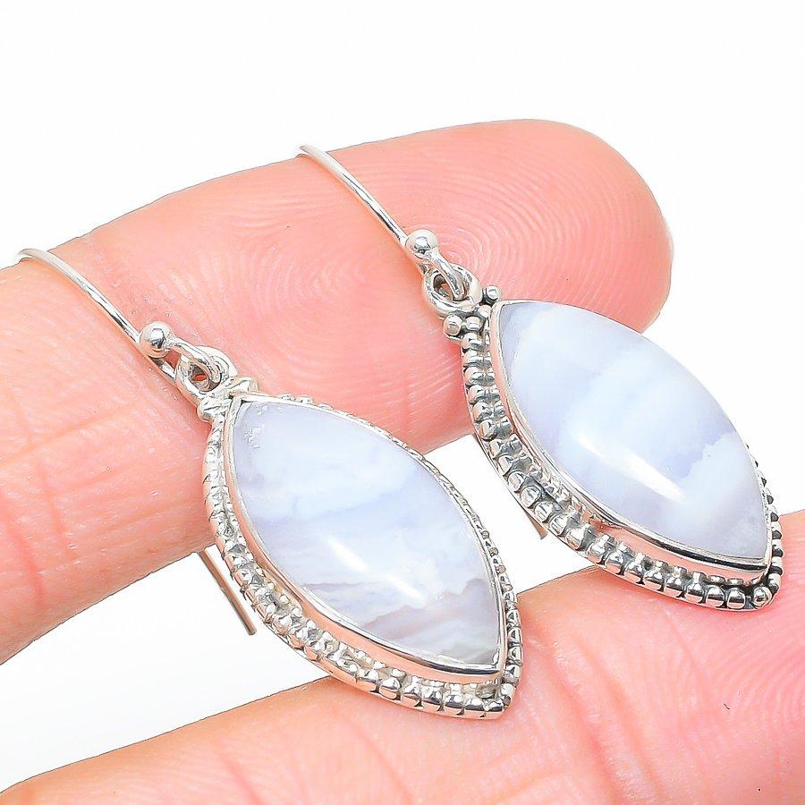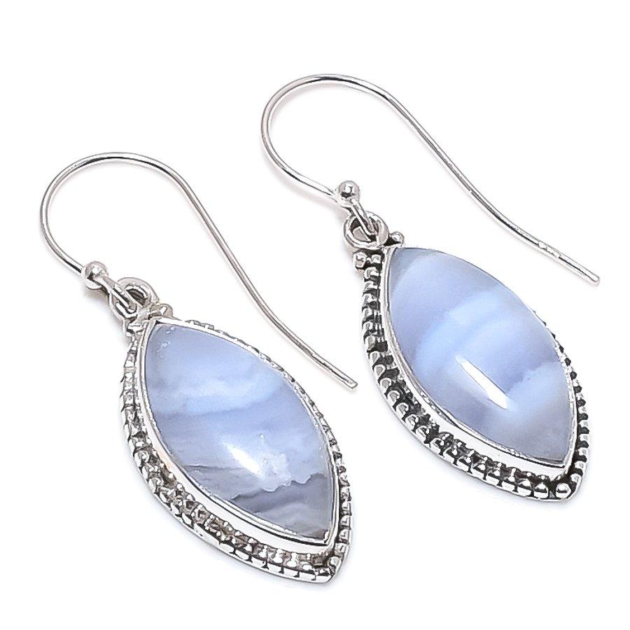 Натуральный камень Голубой кружевной агат Серьга из 925 пробы цельного стерлингового серебра 1,50" b8K48