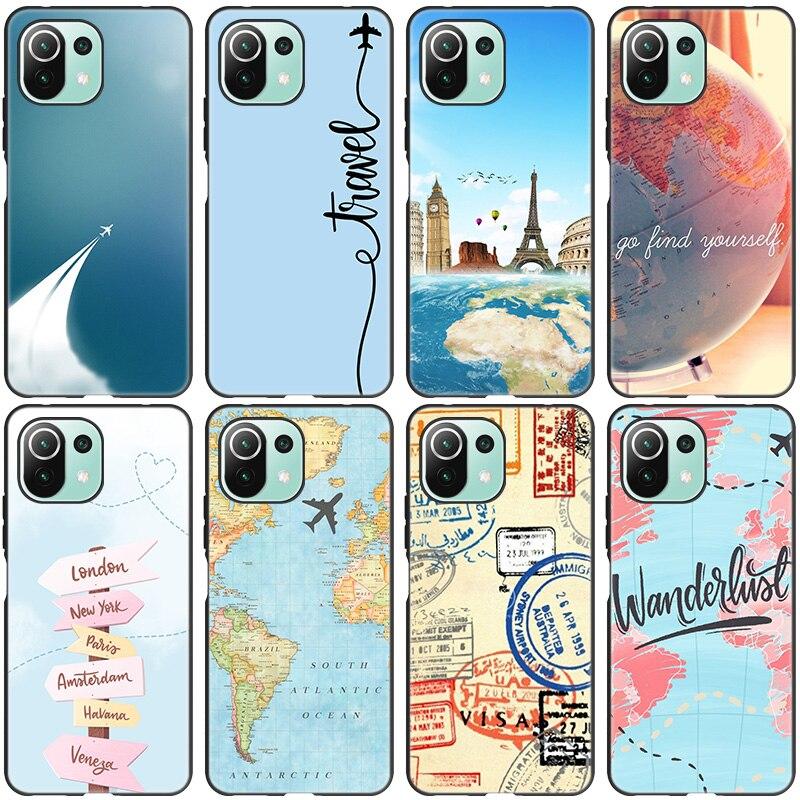 Забавный чехол для телефона с картой путешествий для Xiaomi Mi 11 Lite NE 11i 10T 11T Pro A2 A3 Lite POCO F3 M3 M4 C31 X3 Pro NFC GT черный мягкий чехол