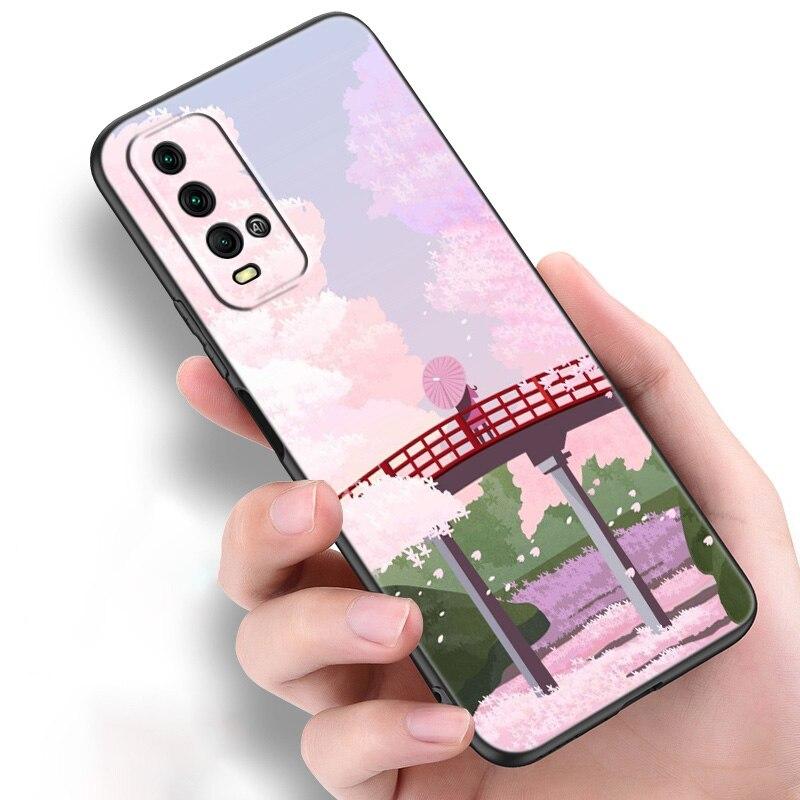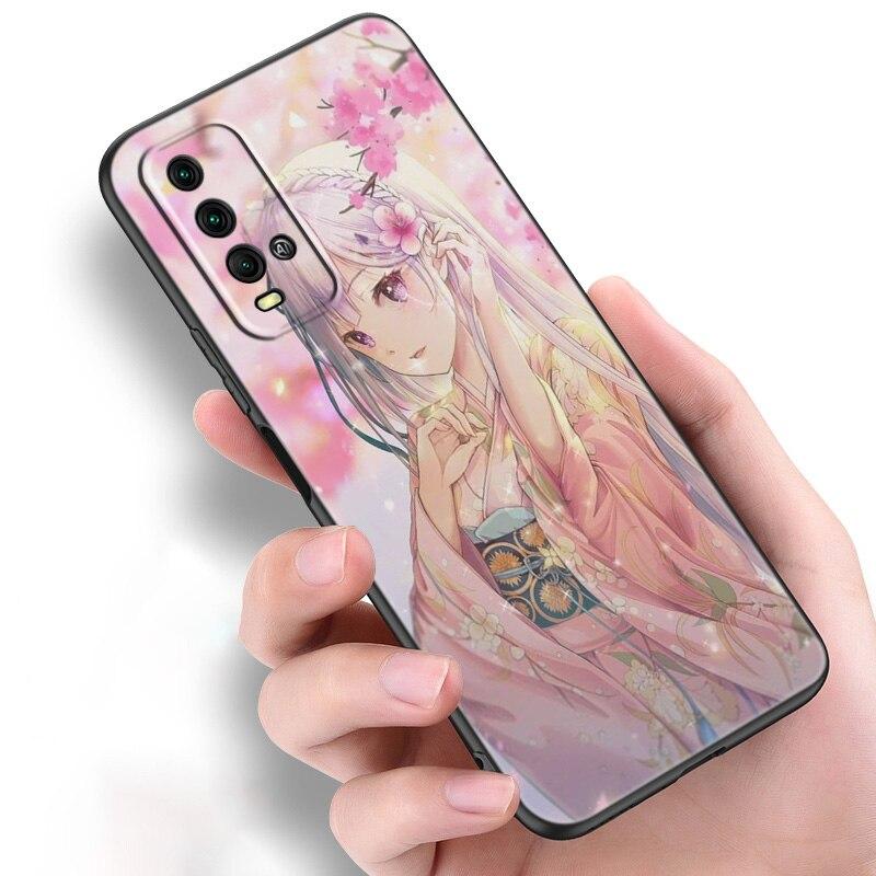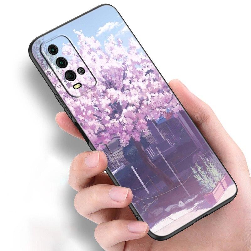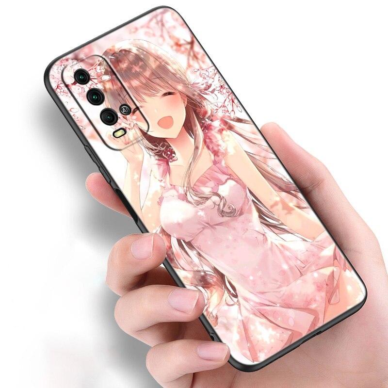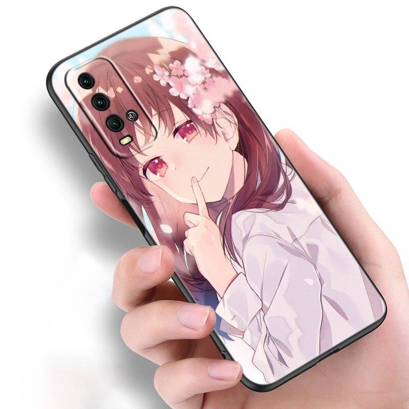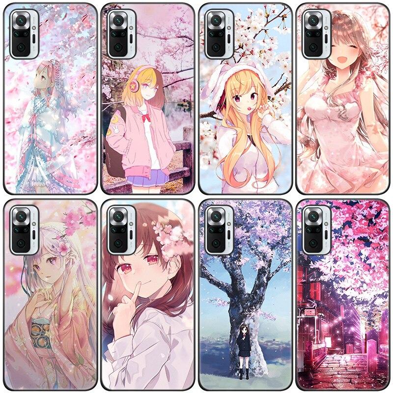 Японский розовый сакура аниме девушка силиконовый чехол для телефона для Xiaomi Redmi Note 11 10 9 8 Pro 11T 10T 10S 9S 8T 9 9A 9C 9T черный чехол