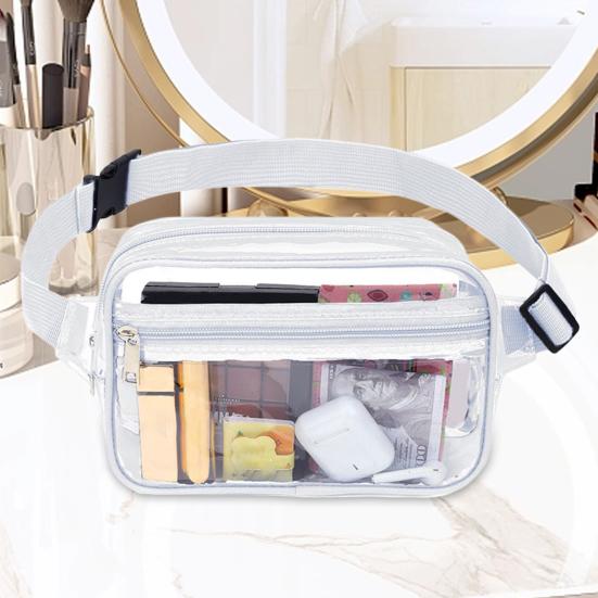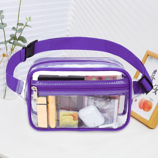 Наша прозрачная поясная сумка - идеальный аксессуар для всех ваших мероприятий на свежем воздухе. Изготовленная из толстого водонепроницаемого ПВХ, эта поясная сумка всегда сохраняет ваши вещи сухими и защищенными. Благодаря регулируемой конструкции пряжки его можно легко отрегулировать в соответствии с размерами талии, обеспечивая удобную и надежную посадку. Независимо от того, бегаете ли вы, бегаете трусцой или тренируетесь, этот поясной рюкзак не будет подпрыгивать или двигаться. Благодаря прозрачной прозрачной прозрачной конструкции наша сумка для хранения большой емкости позволяет легко пройти проверку безопасности и избежать хлопот, связанных с трудоемкой проверкой багажа.. Вы можете использовать сумку большой емкости для хранения кошелька, косметики, ключей, солнцезащитных очков, карт и различных предметов. Носите его на талии или бедре и наслаждайтесь удобством свободных рук, при этом выглядя стильно и стильно. Возьмите его с собой на спортивные стадионы, фестивали, аэропорты или любые другие мероприятия или мероприятия, где вам нужно держать под рукой предметы первой необходимости. С нашей прозрачной поясной сумкой все, что вам нужно, находится на расстоянии одного щелчка.