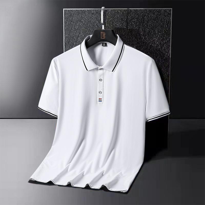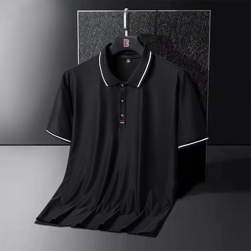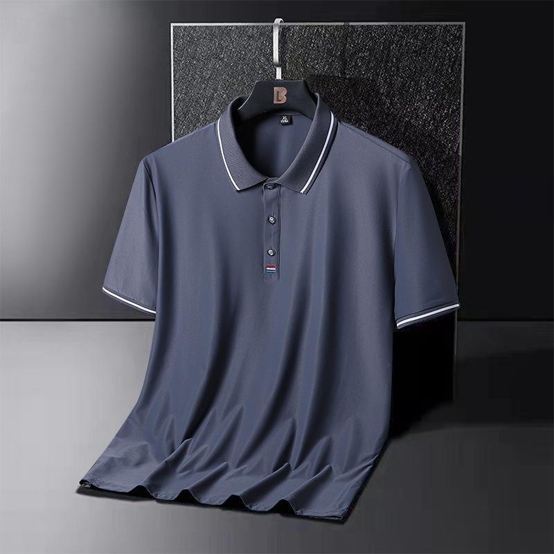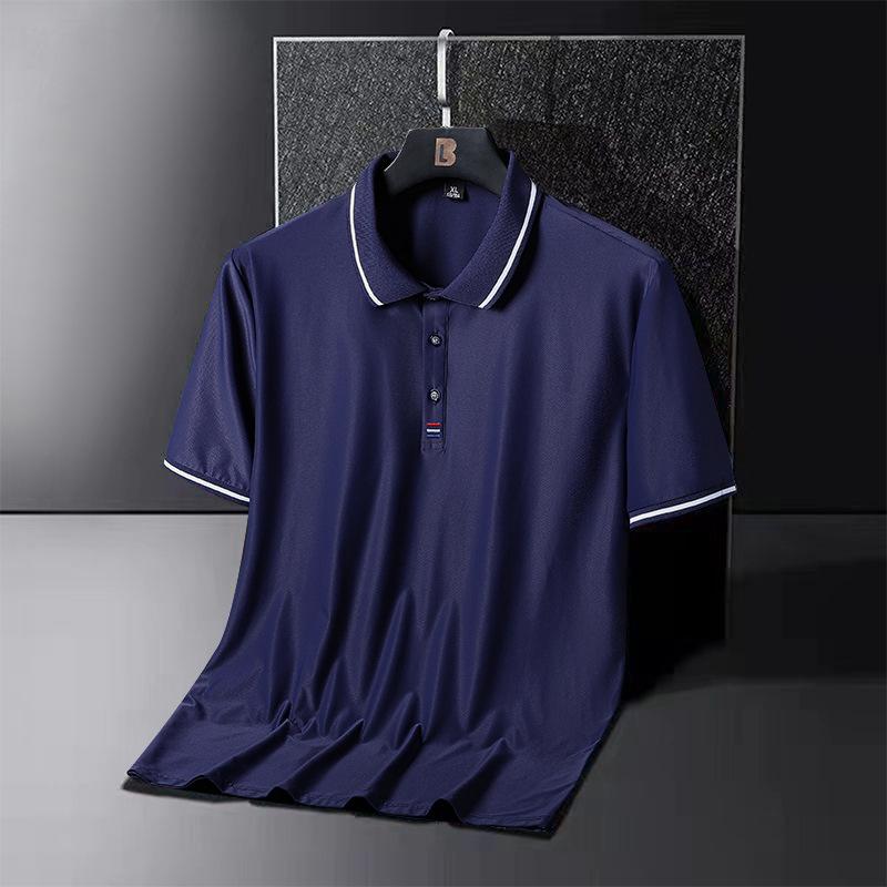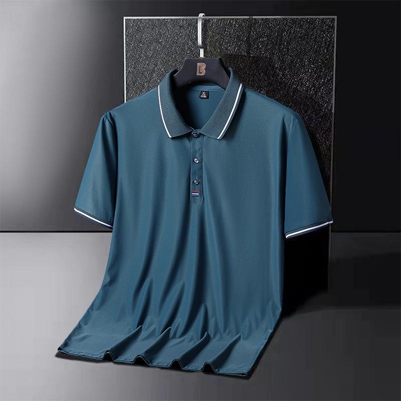 Летняя рубашка поло из ледяного шелка, мужская футболка поло больших размеров с короткими рукавами, футболка среднего возраста с половиной рукавов