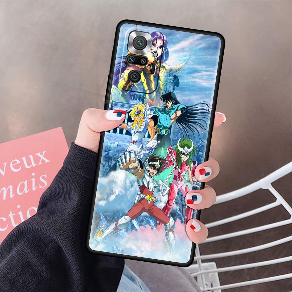 Роскошный черный чехол для телефона Xiaomi Redmi Note 11 10 9 8 7 Pro 9S 9A 9C 10S 8T K40 10C 10S Funda Cover Sainte Seiya Япония Аниме