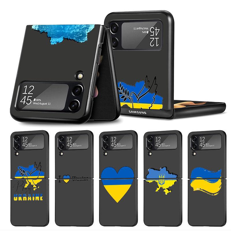 Чехол для телефона с флагом Украины для Samsung Galaxy Z Flip 3 5G 4 Модный Z Flip3 Роскошный Черный Жесткий Задник Чехол-накладка