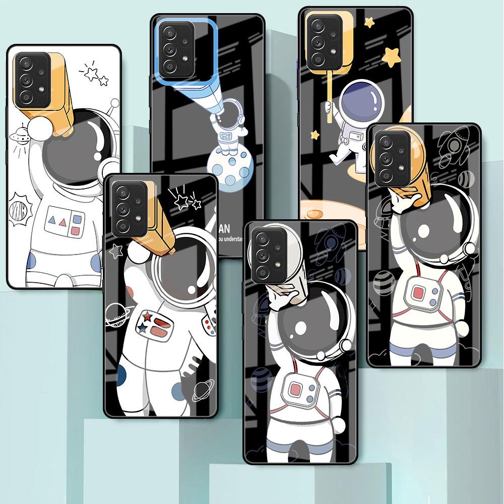 Милый стеклянный чехол с астронавтом для Samsung Galaxy A52 A71 A50 A51 A70 A21s A31 A72 A10 A12 A30 A22 5G, чехол для телефона