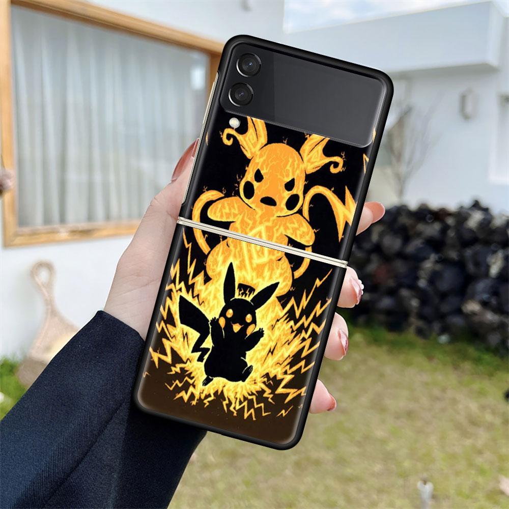 Чехол для телефона Pokemon Cool Pikachu для Samsung Galaxy Z Flip 3 5G, черный твердый чехол ZFlip3, защитный чехол от падения, роскошный чехол