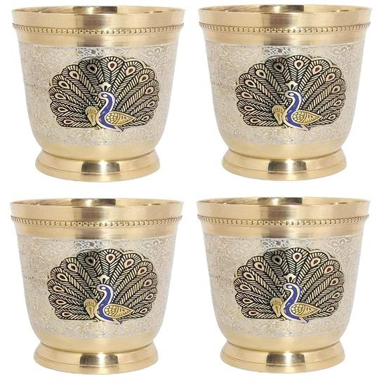 В комплект входит: Набор из 4 латунных стаканов для воды с ручной росписью в виде павлина. Каждый стакан весит 140–175 граммов.. Эти стаканы идеально подходят для сервировки и питья воды.