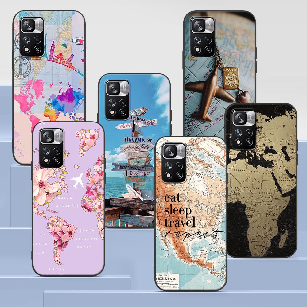 Дорожный чехол с картой мира для Xiaomi Redmi Note 9S 9 8 10 11 Pro 9C 9A 7 8T 7A 8A 6A 6 10S, черный мягкий силиконовый чехол для телефона