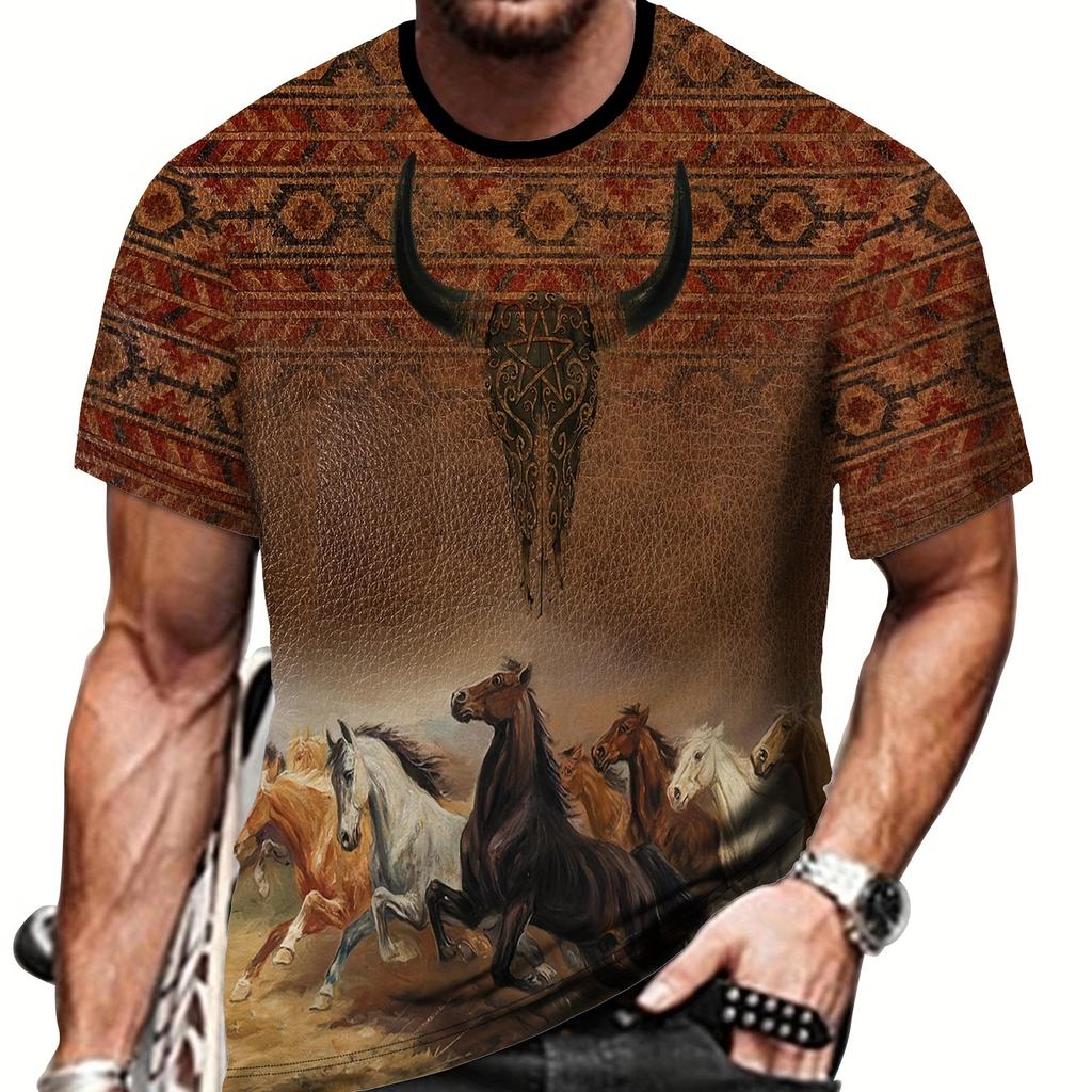 Мужская футболка с коротким рукавом и круглым вырезом с 3D-принтом «Бегущие лошади», повседневная летняя футболка для повседневной носки и отдыха на курортах