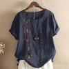 Женская футболка большого размера, хлопково-льняная блузка с вышивкой, футболки с короткими рукавами и пуговицами, летний топ, одежда для мам