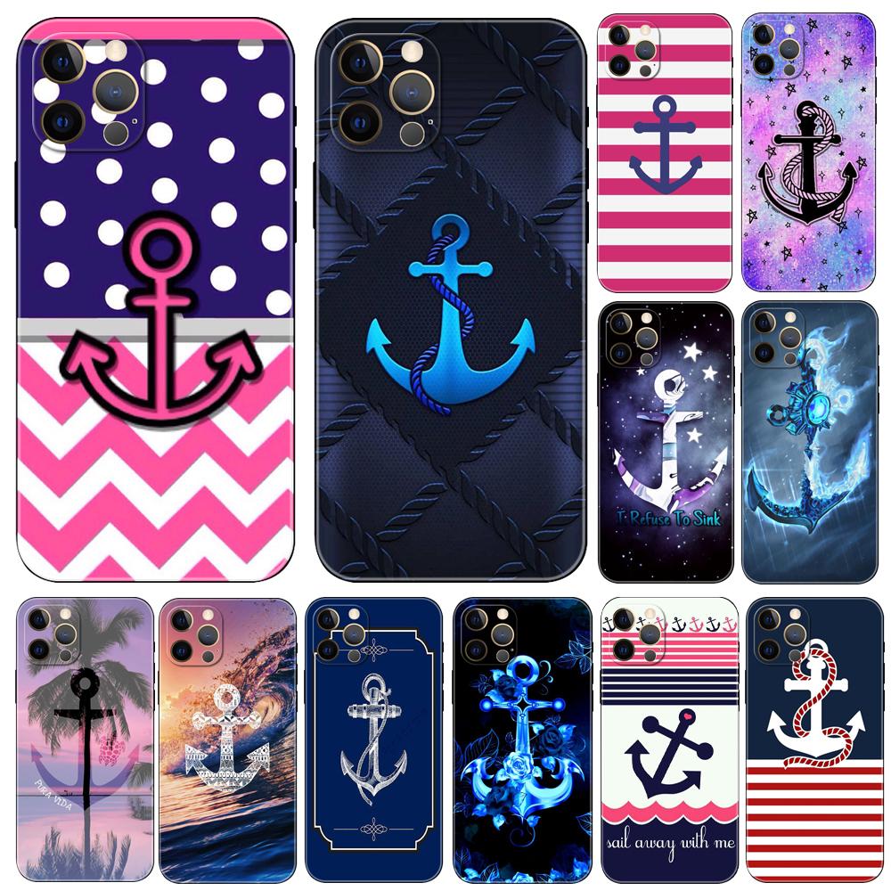 Полоски Якорь Лодка чехол для телефона для iphone 5 5s se 6 6s 7 8 plus x 10 XR XS 11 12 13 mini pro MAX черный tpu задняя крышка