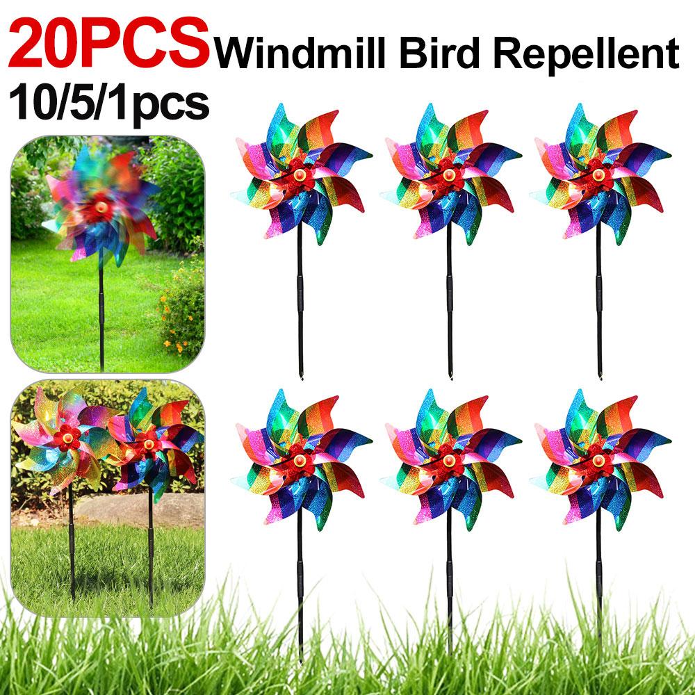 2. Светоотражающая ветряная мельница:Наша визуальная светоотражающая декоративная ветряная мельница использует движение ветра и отражение света, чтобы отпугнуть птиц под любым углом. Яркая светоотражающая ветряная мельница из полиэфирной пленки может легко вращаться на ветру, отпугивая птиц яркими вспышками, защищая ваш сад, ферму и лужайку.