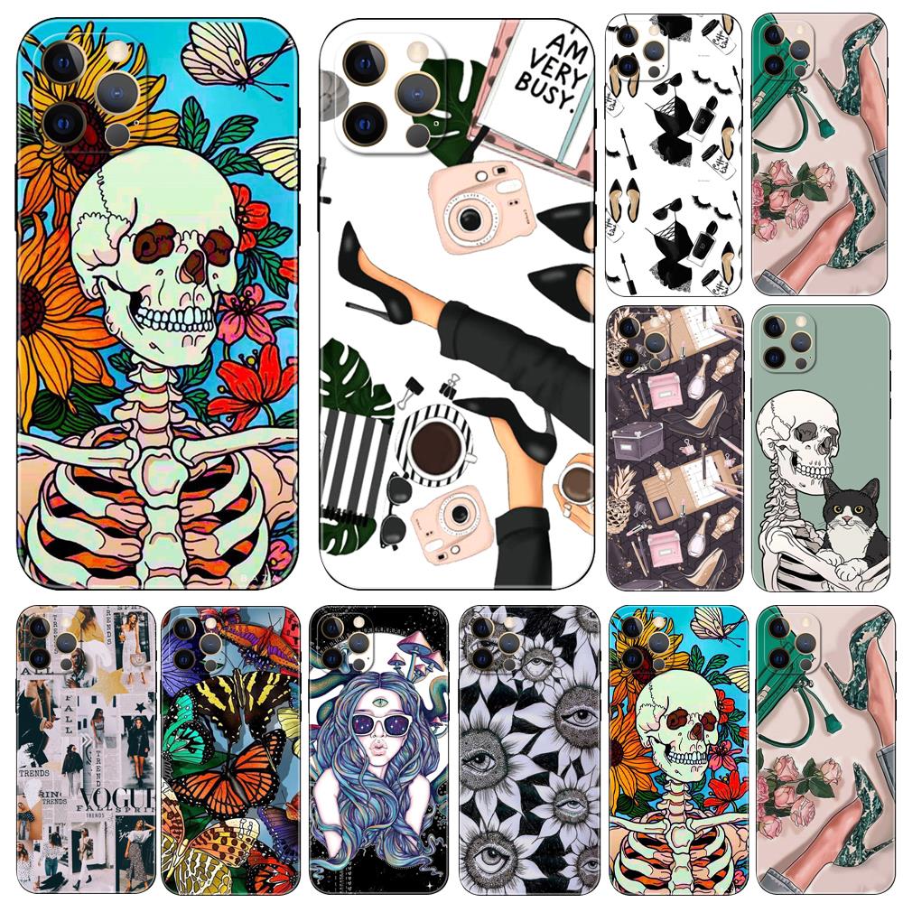 Модный чехол для телефона с изображением черепа для iPhone 5 5s 2020se 6 6s 7 8 plus x 10 XR XS 11 12 13 mini pro MAX, черная задняя крышка из ТПУ