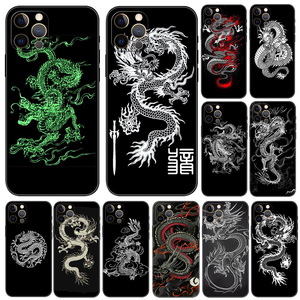 Дизайнерский чехол для телефона с китайским драконом для iphone 5 5s 2020se 6 6s 7 8 plus x 10 XR XS 11 12 13 mini pro MAX, черная задняя крышка из ТПУ — купить товар онлайн с бесплатной доставкой по всему миру!