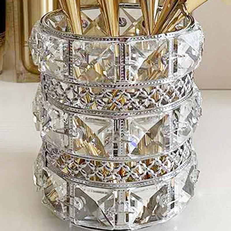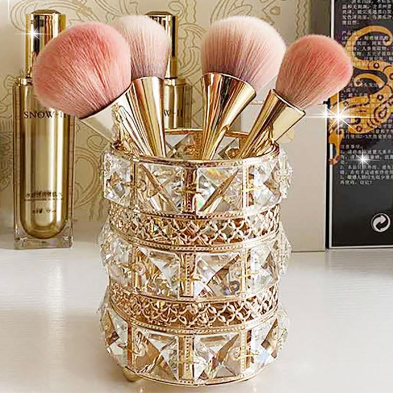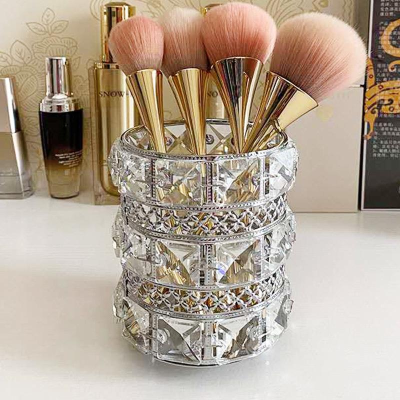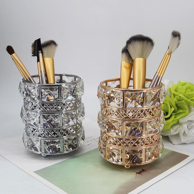 Ящик для хранения косметических кистей Гостиная Спальня Настольный светильник Роскошные украшения Кисть для макияжа Карандаш для бровей Хрустальное стекло Держатель для ручек