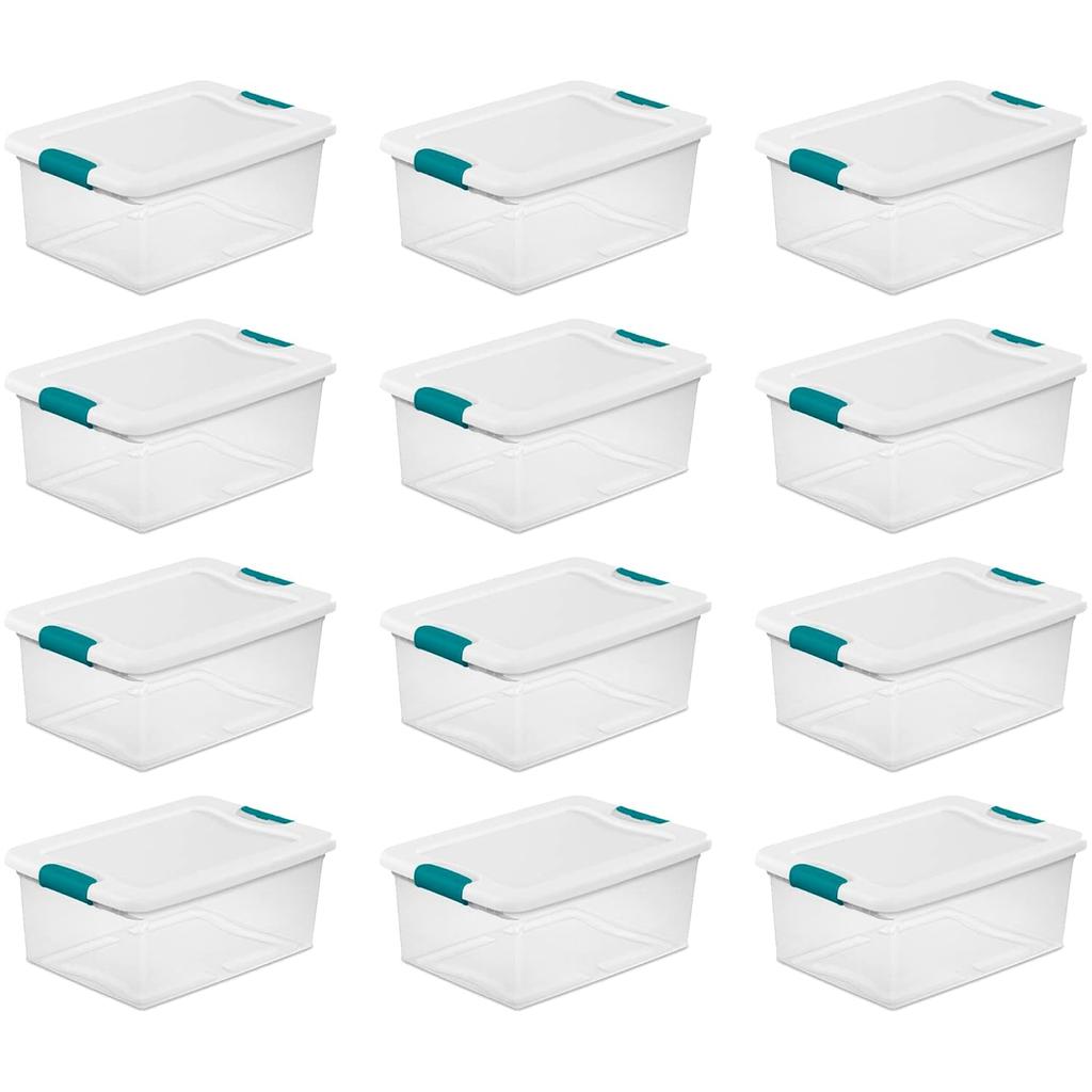 Коробка для хранения Sterilite с защелкой на 15 кварт, штабелируемая корзина с крышкой с защелкой, пластиковый контейнер для организации полки в шкафу, прозрачный с белым