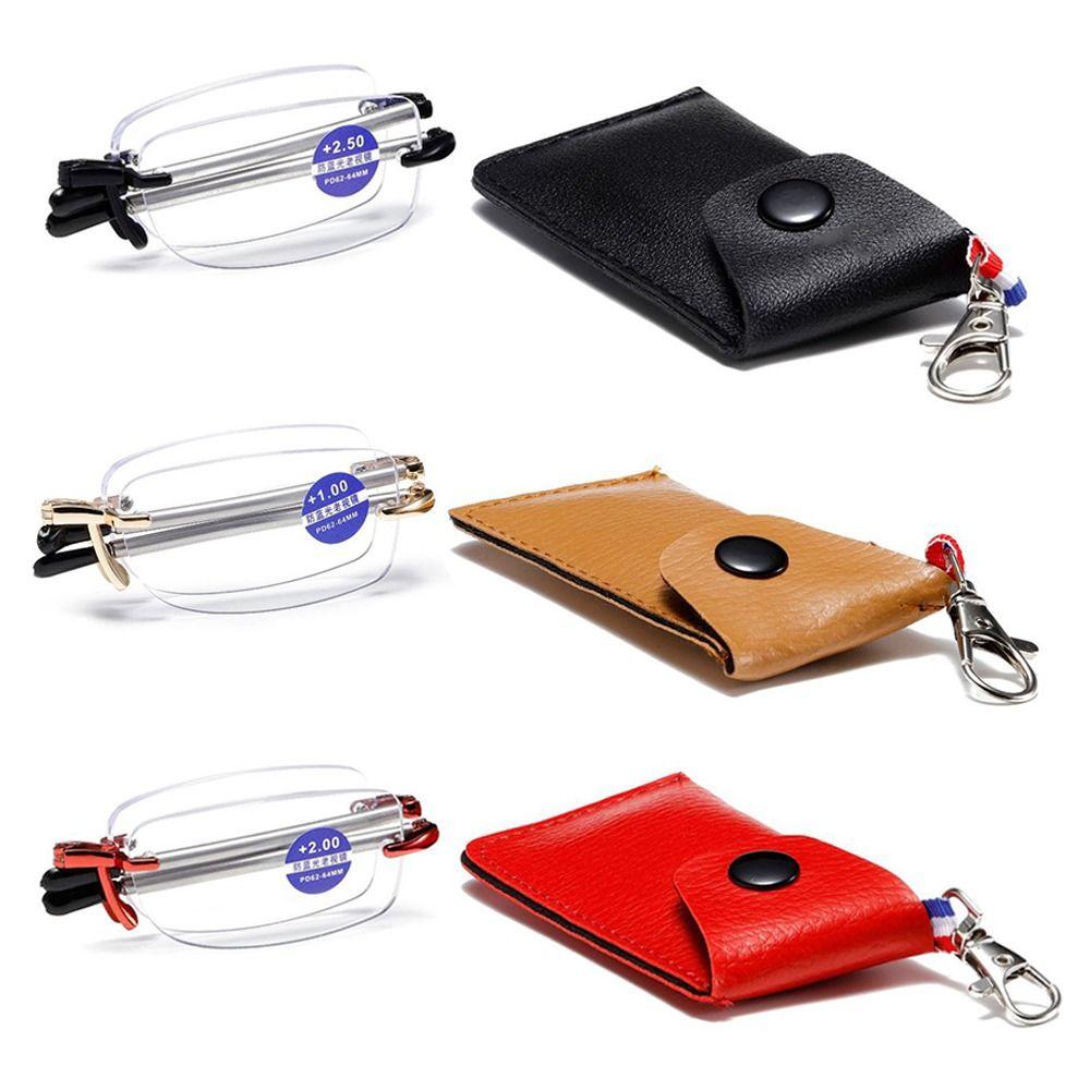Новые складные очки для чтения с цепочкой для ключей, женские очки для чтения с металлической антенной и сумкой, антисиние складные очки для чтения