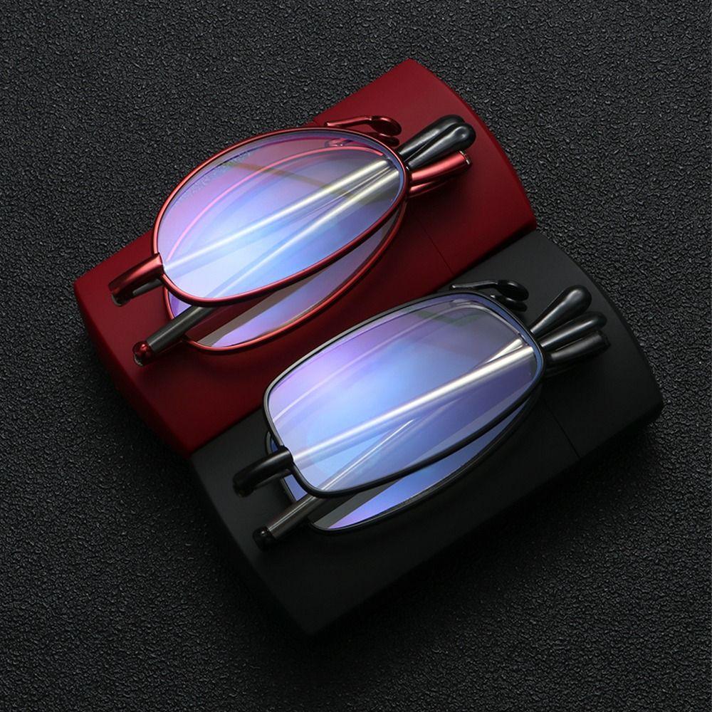 Новые складные очки для чтения с цепочкой для ключей, женские очки для чтения с металлической антенной и сумкой, антисиние складные очки для чтения