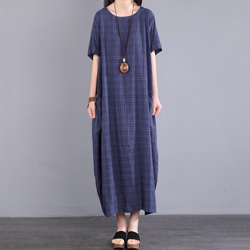 Новое хлопковое винтажное клетчатое платье больших размеров с коротким рукавом для женщин, повседневное свободное длинное летнее платье — купить товар онлайн с бесплатной доставкой по всему миру!