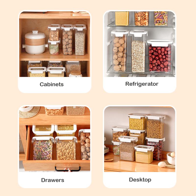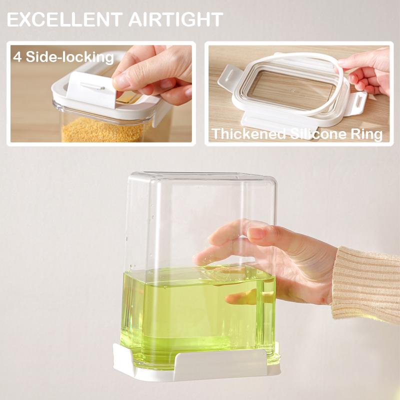 Герметичные крышки — 4 боковые крышки с белой силиконовой прокладкой создают герметичное уплотнение, защищают эти контейнеры для хранения от воздуха и воды, сохраняя ваши продукты свежими и сухими, помогают обеспечить длительное хранение продуктов.
