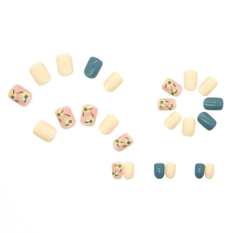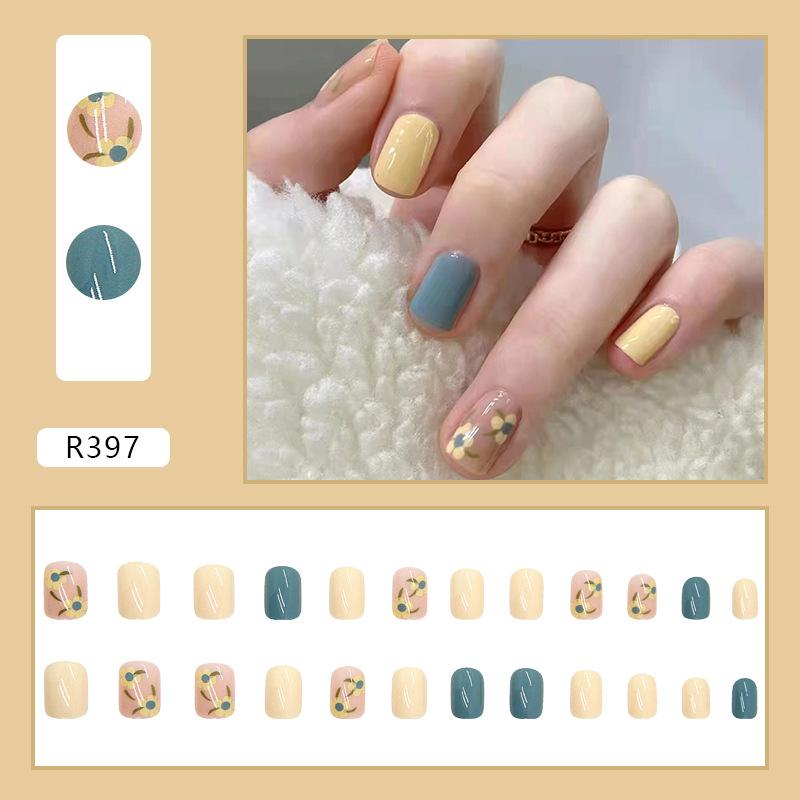 Искусственные ногти, короткие маникюрные патчи, гусино-желтые цветы, свежие и популярные, носимые ногти