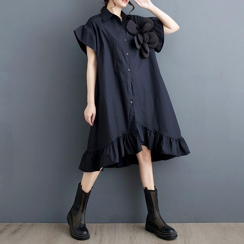 Новое хлопковое винтажное платье с цветочным принтом больших размеров с коротким рукавом для женщин, повседневное свободное длинное летнее платье-рубашка миди