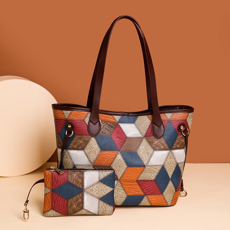Комплект из 2 больших сумок с геометрическим узором, модная сумка через плечо, женская большая сумка с клатчем для монет — купить товар онлайн с бесплатной доставкой по всему миру!