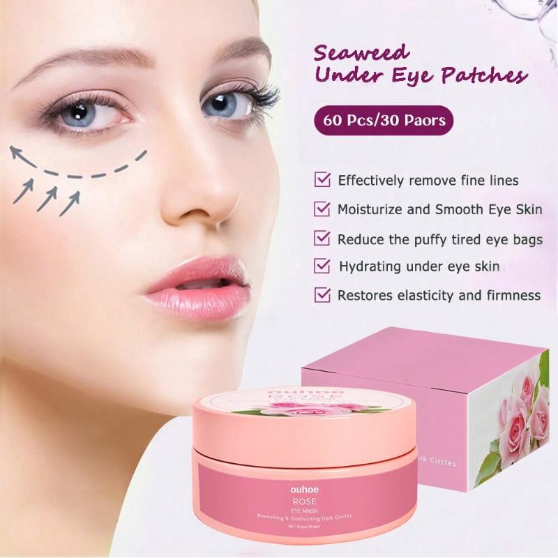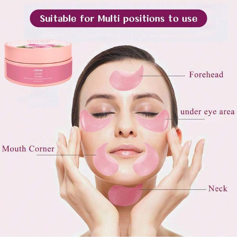 60 шт. Маска для глаз с розовой розой уменьшает углы, тонкие линии, мешки под глазами, черные круги, увлажняет и подтягивает кожу, обеспечивает уход за глазами.