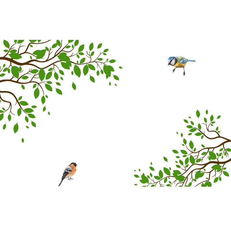 Простые маленькие свежие зеленые листья, птицы, электростатические наклейки на окна, декоративное стеклянное окно, двусторонние визуальные наклейки на стену
