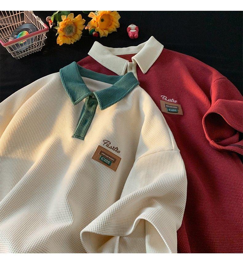 Хип-хоп американская уличная мужская женская модная рубашка-поло с короткими рукавами летняя вафельная повседневная
