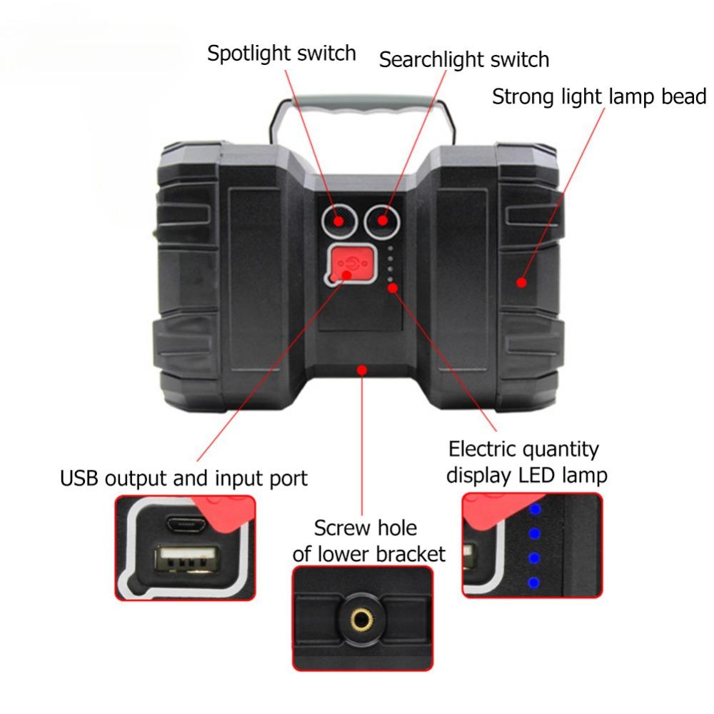 40 Вт светодиодный супер яркий фонарик, перезаряжаемый через USB двойной головной прожектор, ручной фонарик, рабочий прожектор, прожектор для кемпинга