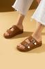 Женские тапочки на комфортной подошве с двойной золотой пряжкой 70-0232-24 — купить товар онлайн с бесплатной доставкой до всему миру!