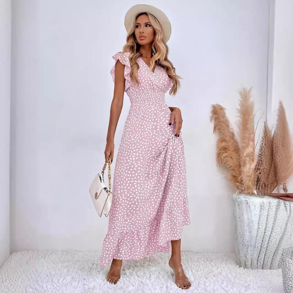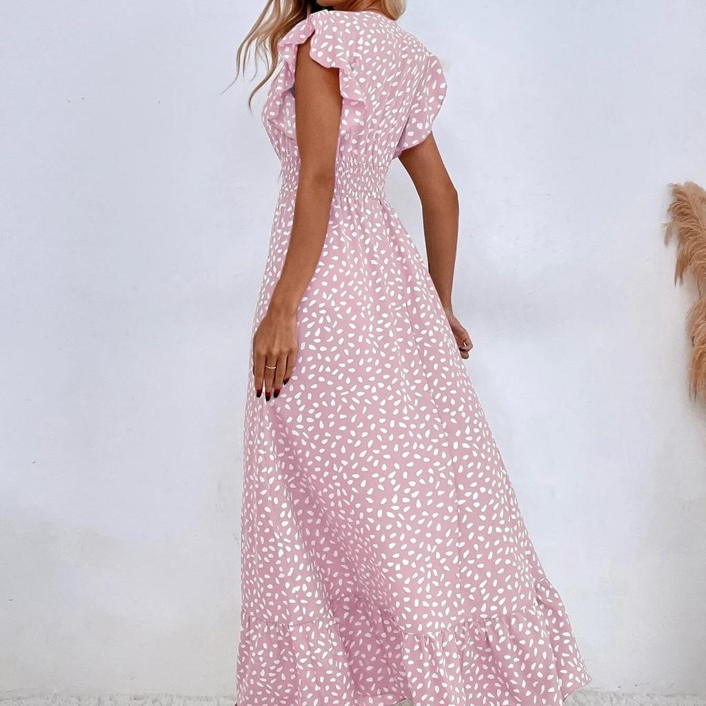 QICED Женская весна-лето с v-образным вырезом на талии, пышная юбка с рукавами лотоса и высокой талией