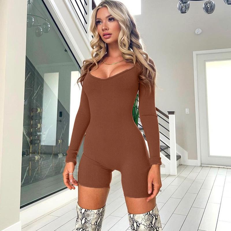 Женский зимний однотонный комбинезон с U-образным вырезом и длинными рукавами в европейском и американском стиле