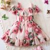 Модное шифоновое платье на подтяжках для девочек, детское платье принцессы на бретелях с цветочным принтом для малышей, детская одежда