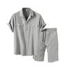 Новая мужская однотонная рубашка больших размеров с короткими рукавами, летний повседневный костюм из двух предметов, мужской костюм с лацканами