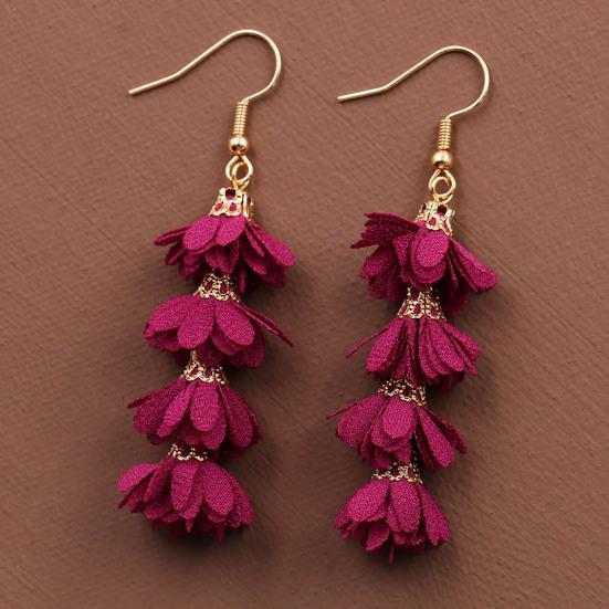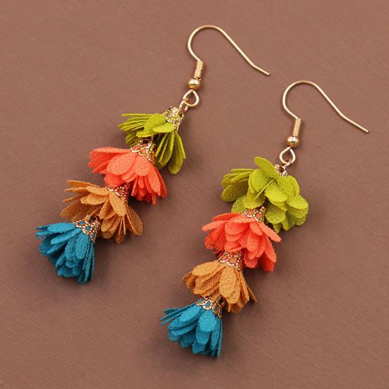 1 пара многослойных сережек-капель для пирсинга, тканевые серьги-крючки с кисточками и цветами, ювелирные изделия в подарок