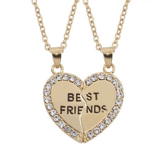 2 шт. блестящие стразы ожерелья дружбы подарок лучшие друзья сердце кулон ожерелья ювелирные аксессуары