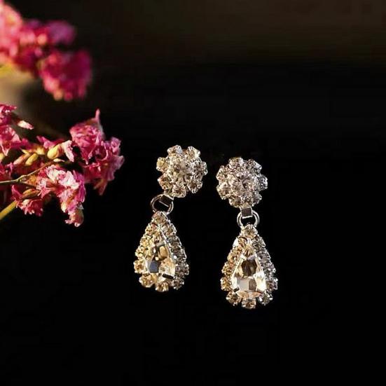 1 комплект свадебного ожерелья, серьги в форме капли воды, ювелирные изделия со стразами, сверкающий комплект ювелирных изделий в корейском стиле