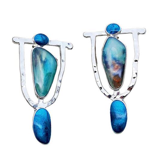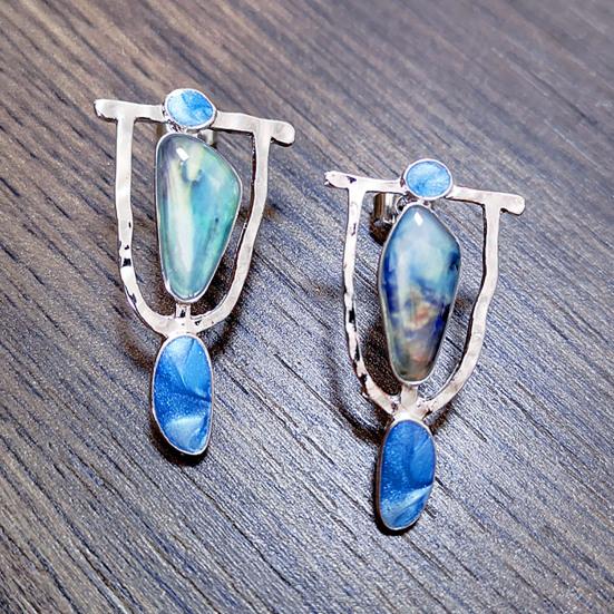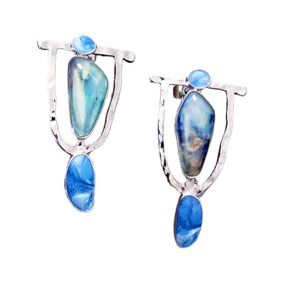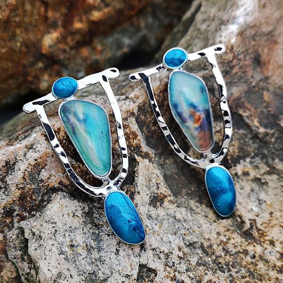 1 пара длинных полых серег-гвоздиков с мраморным узором, большие серьги с преувеличенным камнем неправильной формы, ювелирные изделия