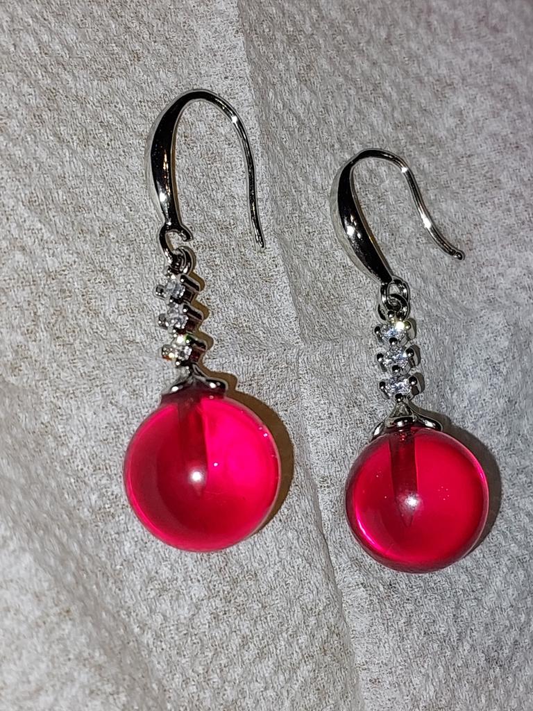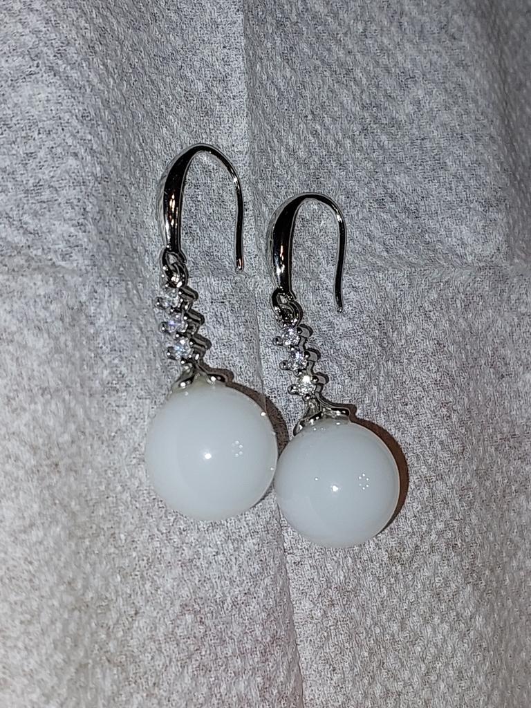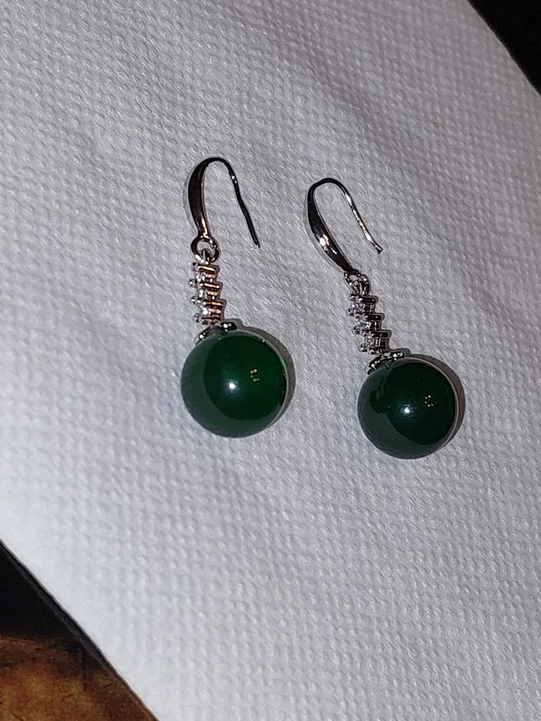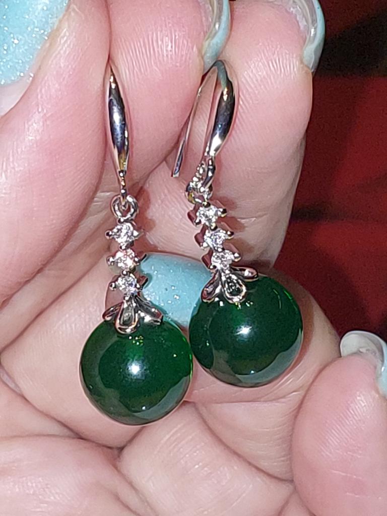 Очень милые , красивые серьги. Сделаны хорошо. Шарик красивого зелёного цвета. Слава богу - не пластик, похоже на камень. Но крючочки маленькие, надо следить, чтобы не выпали из ушей. К покупке рекомендую. До Москвы посылка шла месяц.