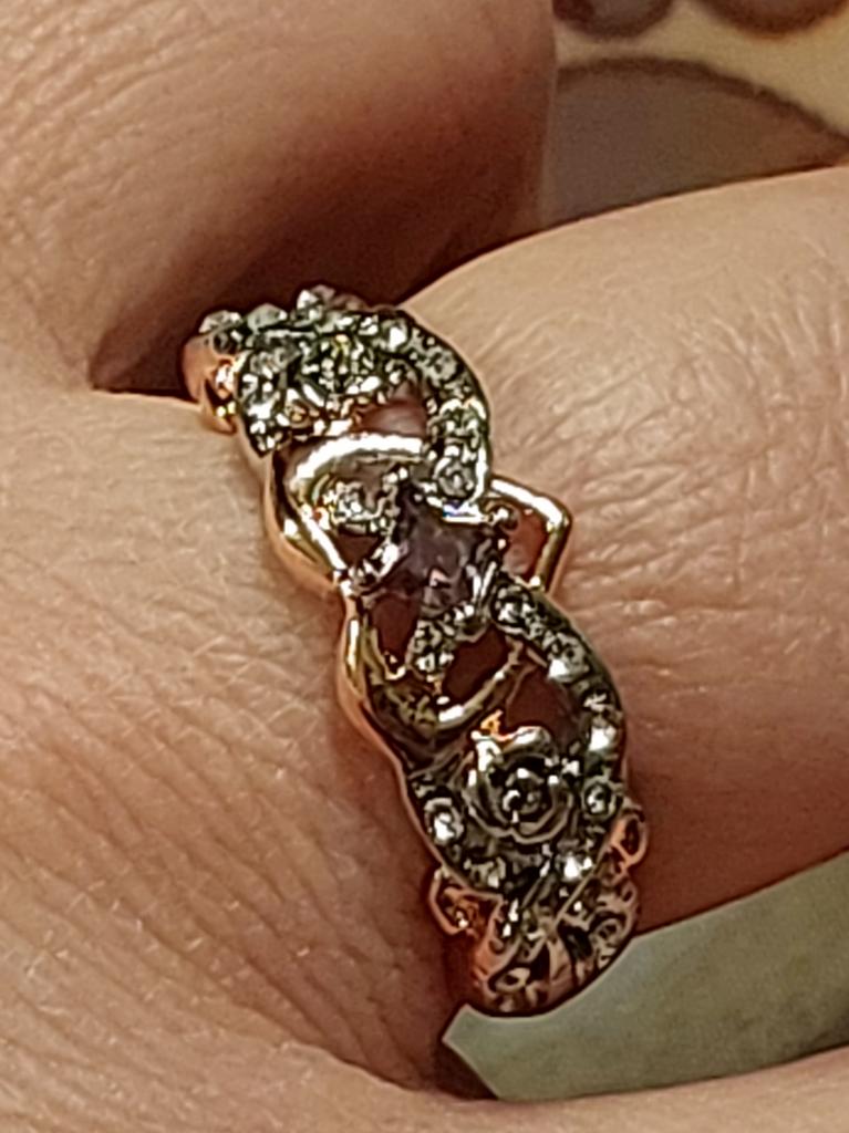 Хорошенькое колечко. Понравилось. "Золотые" участки кольца слишком розовые. Был бы лучше более приглушённый оттенок.