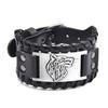 Мужской браслет, регулируемый широкий мягкий плетеный браслет из искусственной кожи в стиле ретро, браслет-манжета с головой животного